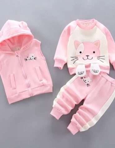 طقم شتوي أنيق مكون من 3قطع بنمط لطيف