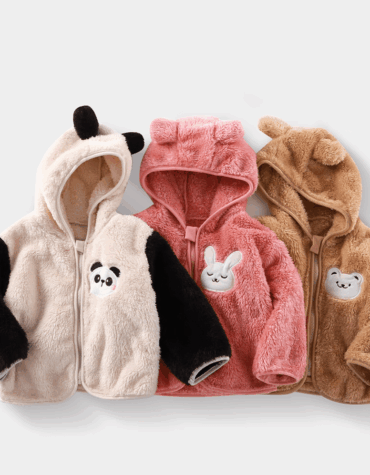 جاكيت شتوي فرو مع قبعة بنمط الدب