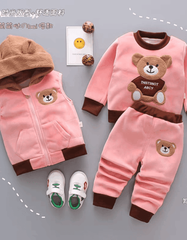 طقم شتوي راقي مكون من 3قطع بنمط الدب