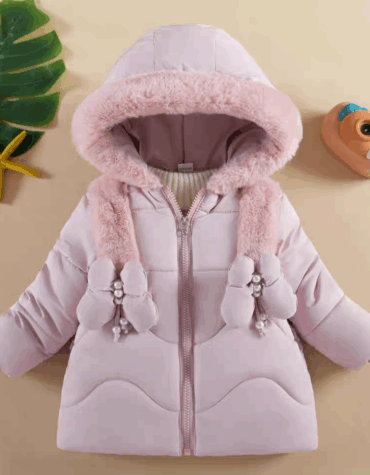 جاكيت بناتي شتوي فخم مبطن من الداخل مع قبعة