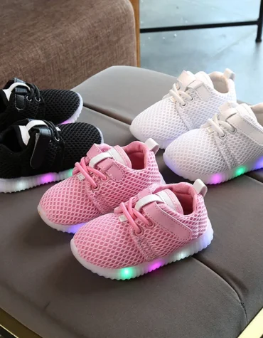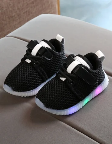 أحذية أطفال شبكية مضيئة LED مع أربطة وشريط تثبيت امامية للاولاد والبنات