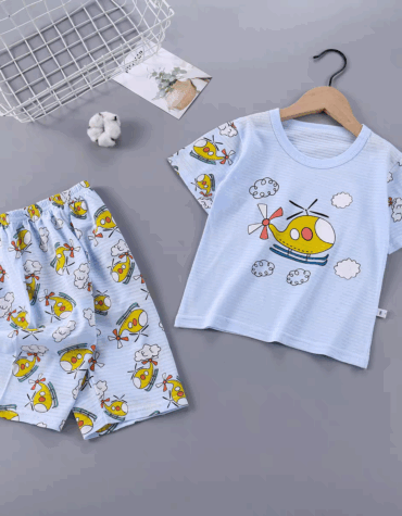 طقم بيجاما مكون تيشيرت بأكمام قصيرة وسروال نمط رسومات للأولاد والبنات