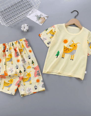 طقم بيجاما مكون من قميص بأكمام قصيرة على أزرار أمامية وسروال بأشكال لطيفة للأولاد والبنات