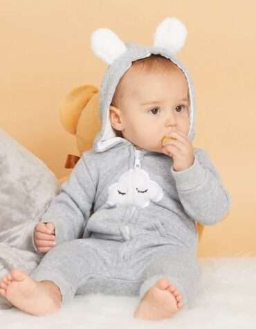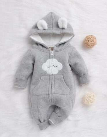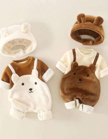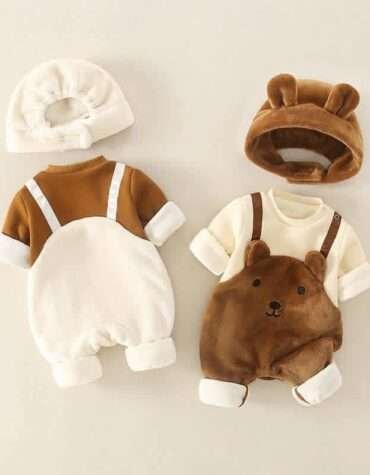 أفرول ولادي شتوي بأكمام طويلة مع قبعة بنمط دب