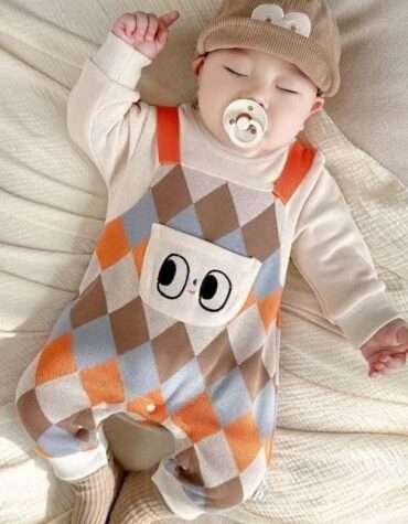 طقم ولادي أنيق مكون من رومبير وسروال وقبعة بنمط جميل