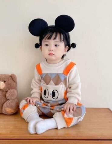أفرول قطني أنيق بأكمام طويلة بنمط الدب