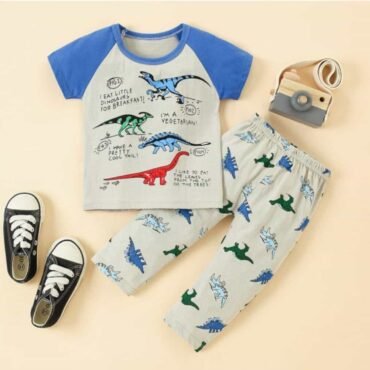 طقم كاجول ولادي من قطعتين مطبع حروف