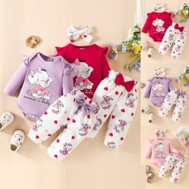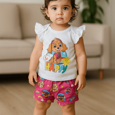 طقم بناتي صيفي مكون من قطعتين تي شيرت و شورت برسوم كرتونية بتصميم جذاب