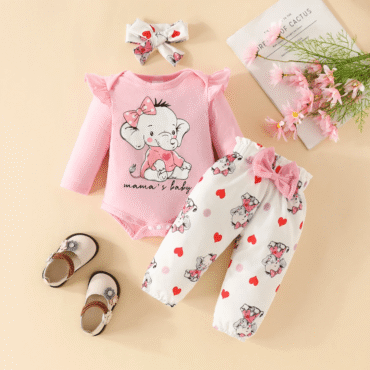 طقم بناتي أنيق مكون من بوديسوت بنمط لطيف وشورت مع ربطة شعر