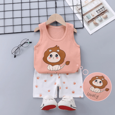 طقم بيجاما بناتي صيفي مكون من تي شيرت بدون أكمام و سروال بتصميم جذاب