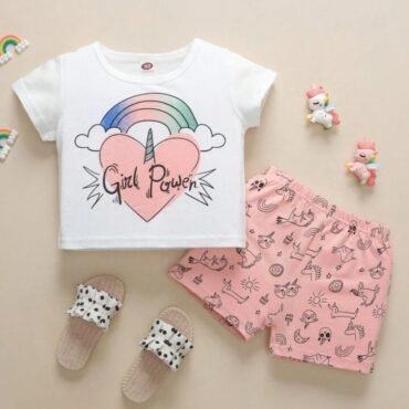 طقم بناتي صيفي مكون من قطعتين تي شيرت و شورت بتصميم فخم و جذاب