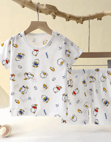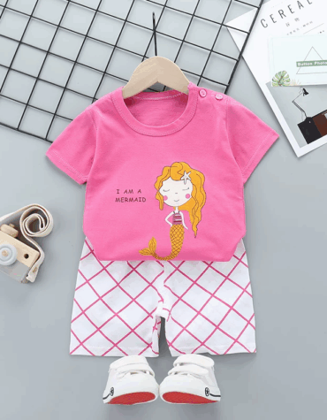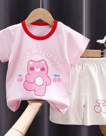 طقم مكون من تي شيرت وشورت برسوم لطيفة