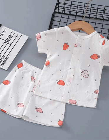 طقم بيجاما مكون من قميص وشورت بنمط فراولة