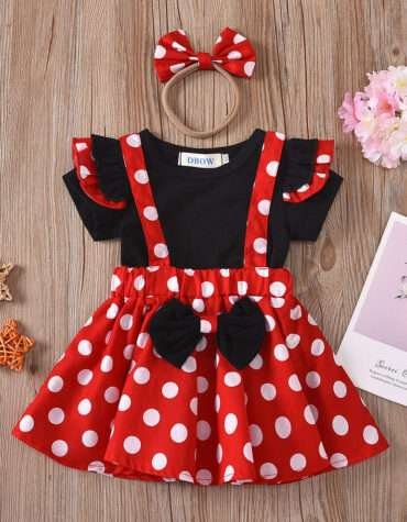 طقم بناتي أنيق مكون من 3 قطع فنيلة وتنورة على شيال مع ربطة شعر