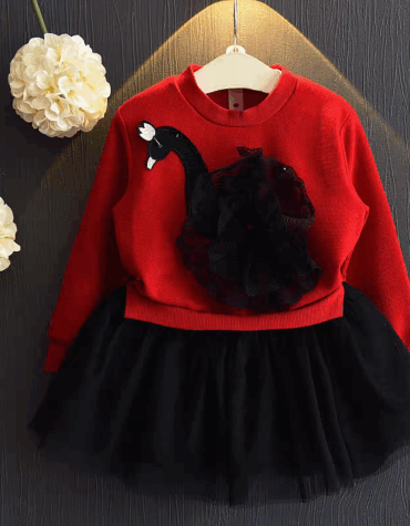 طقم بناتي شتوي مكون من بلوزة مزينة بالكرز وتنورة بتصميم حديث وعصري