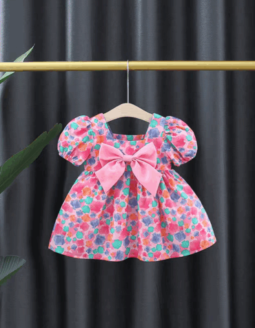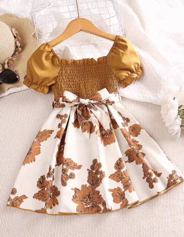 فستان بناتي أنيق بأكمام قصيرة بنمط الورود