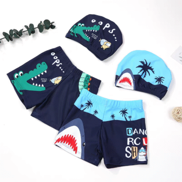 مايوهات سباحة للأولاد والبنات مع قبعة
