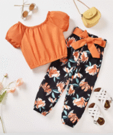 طقم بناتي أنيق 2 قطع بلوزة & سروال ضيق من الاسفل بنمط الزهور