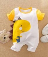رومبير قطني بأكمام قصيرة مع قبعة مطبوع بحروف ، للأطفال حديثي الولادة
