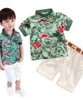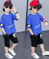 طقم ولادي انيق مكون من قطعتين تي شيرت بأكمام قصيرة وشورت للاطفال الصغار