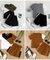 طقم ولادي انيق مكون من قطعتين تي شيرت بياقة وقصيرة الأكمام مع شورت