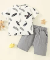 طقم ولادي انيق مكون من قطعتين شميز بأكمام قصيرة وشورت