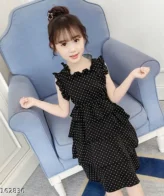 فستان بناتي راقي مزين بفيونكة باكمام مكشكشة