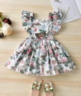 فستان بناتي مميز باكمام طويلة ونمط الورود الانيقة
