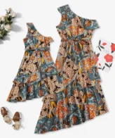 فستان حديث بأكمام قصيرة، نقشة الزهور للفتيات الصغيرات