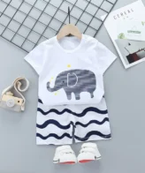 طقم انيق مكون من قطعتين تي شيرت برسومات وشورت للأولاد والبنات