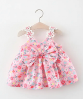 فستان بناتي راقي مزين بفيونكة باكمام مكشكشة