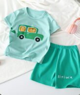 طقم بناتي انيق 2 قطع بلوزة بأكمام قصيرة وشورت
