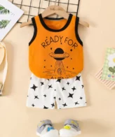 طقم بناتي من قطعتين بلوزة بدون أكمام وشورت نمط أرنب