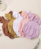 أفرول مثلث بناتي راقي بأكمام طائرة مكشكشة للاطفال حديثي الولادة