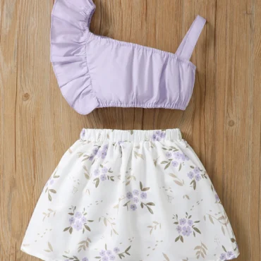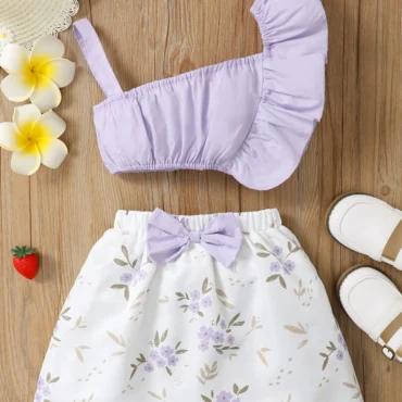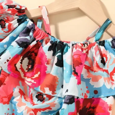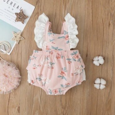 طقم بناتي 3 قطع، مطبوع نمط الزهور بتصميم حديث وراقي لحديثي الولادة