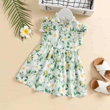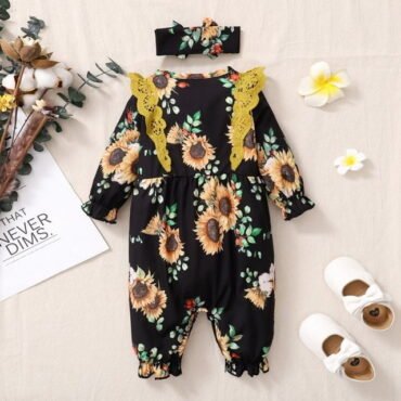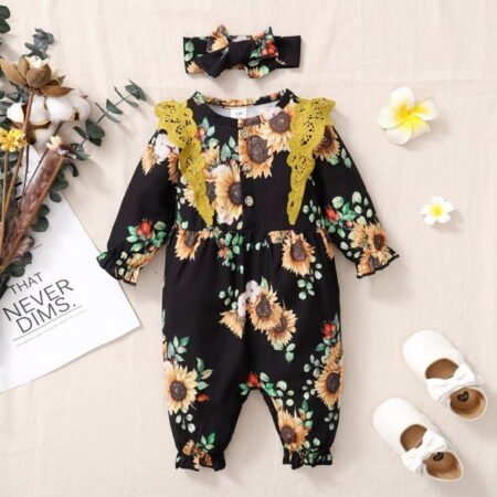 طقم بناتي 3 قطع، مطبوع نمط الزهور بتصميم حديث وراقي لحديثي الولادة