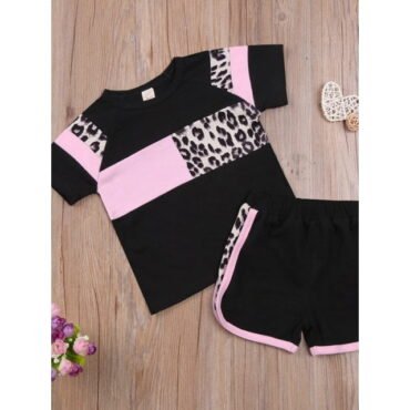 طقم بناتي انيق 2 قطع بلوزة بأكمام قصيرة وشورت