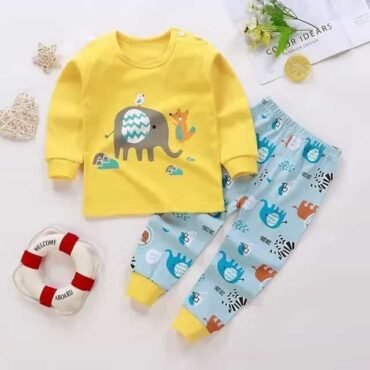 بيجاما بناتي قطن 2 قطع أكمام طويلة سروال نمط حيوان
