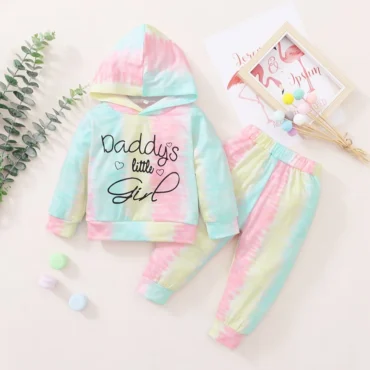 طقم بناتي أكمام طويلة لحديثي الولادة من قطعتين نمط حروف