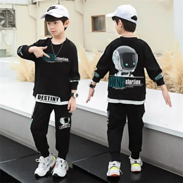 طقم ولادي حديث رياضي بأكمام طويلة نمط روبوت