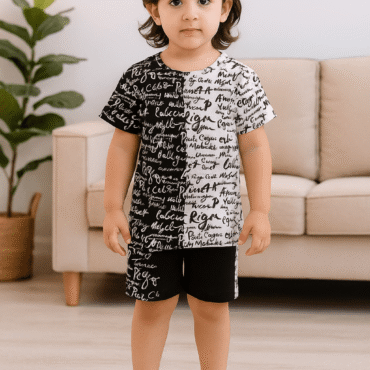 طقم ولادي حديث 2 قطع تي شيرت بجيب & شورت نمط حروف
