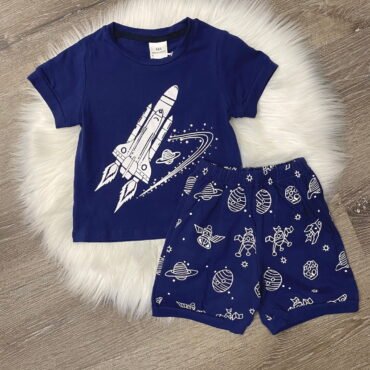طقم ولادي انيق مكون من قطعتين تي شيرت قصيرة الأكمام مع شورت نمط الصاروخ