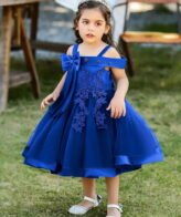 فستان بناتي راقي مزين بفيونكة باكمام مكشكشة