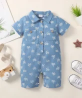رومبير قطني انيق بأكمام قصيرة مع قبعة نمط الدب، للأطفال حديثي الولادة