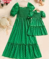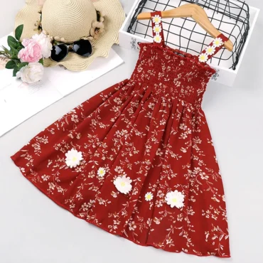 فستان حديث بأكمام قصيرة، نقشة الزهور للفتيات الصغيرات