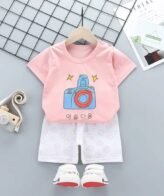 طقم اطفال صيفي قطن 100% من قطعتين تي شيرت برسوم كرتونية &, شورت