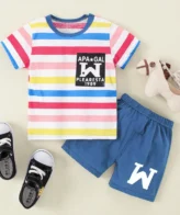 طقم بناتي قطني مكون من قطعتين بلوزة بأكمام قصيرة &, بنطلون، نمط حروف