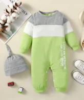 أفرول قطني أنيق بأكمام طويلة مع غطاء للرأس مزين بفيونكة للاطفال حديثي الولادة