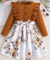 بنطلون بناتي انيق مزين بفيونكة مطبوع بالزهور