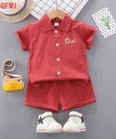 طقم بناتي انيق 2 قطع بلوزة بأكمام قصيرة وشورت